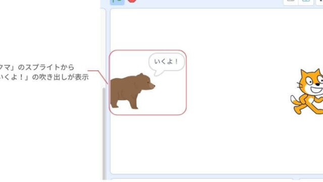 次に吹き出しのブロックを入れていきたいので、「こんにちは!と2秒言う」のブロックを「10回繰り返す」の中に入れてください。